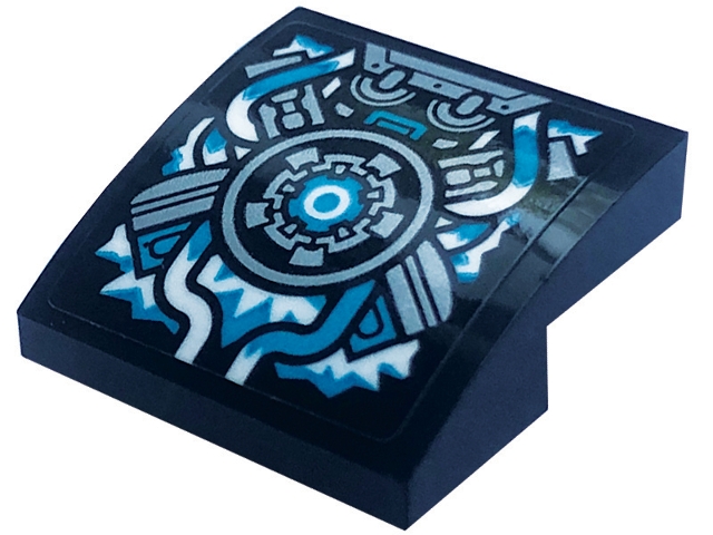 Slope, Curved 2 x 2 x 2/3 with White and Medium Azure Pipes and Ice, Silver Circle and Mechanical Pattern (Sticker) - Set 71791