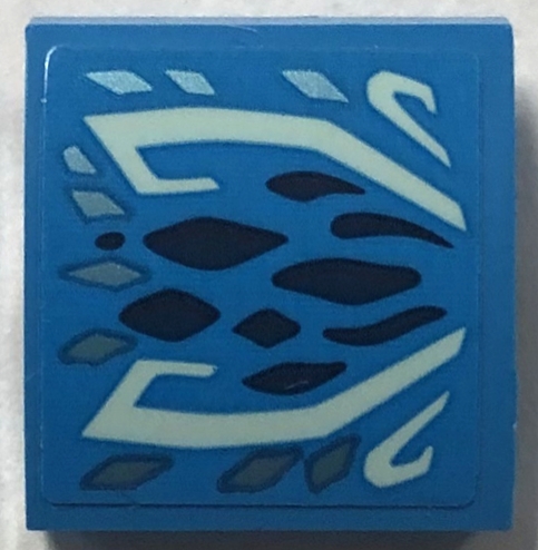 Slope, Curved 2 x 2 x 2/3 with Light Aqua Markings, Dark Blue and Metallic Light Blue Scales Pattern Model Right Side (Sticker) - Set 71754