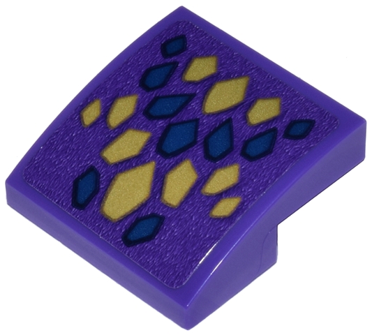 Slope, Curved 2 x 2 x 2/3 with Pearl Gold and Dark Blue Dragon Scales Chevron Arrangement Pattern (Sticker) - Set 71836
