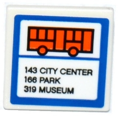 Road Sign 2 x 2 Square with Open O Clip with Orange Bus, '143 CITY CENTER', '166 PARK' AND '319 MUSEUM' Pattern (Sticker) - Set 60104