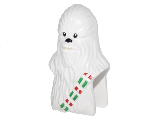 Minifigure, Head, Modified SW Wookiee, Chewbacca with Black Eyes and Nose and Holiday Red and Green Ammo Strap Pattern