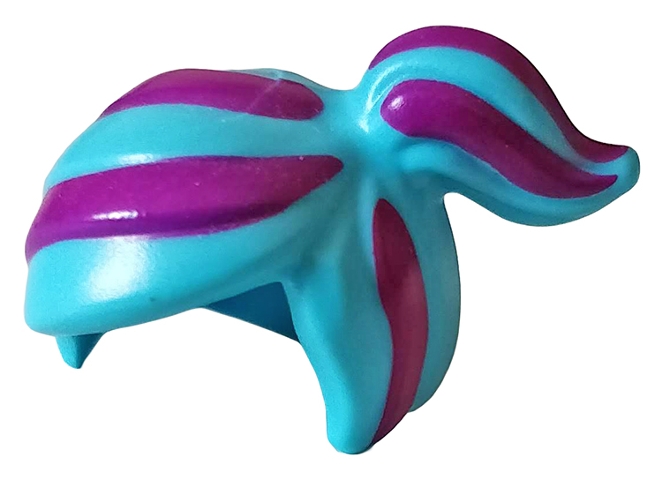 Minifigure, Hair Female Ponytail Off-center with 6 Magenta Stripes Pattern
