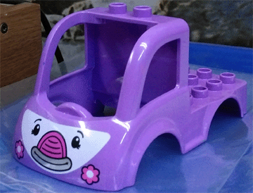 Duplo Car Body Truck 4 x 4 Flatbed with 2 Top Studs, Flower Headlights and Smile (Rosie The Ambulance) Pattern