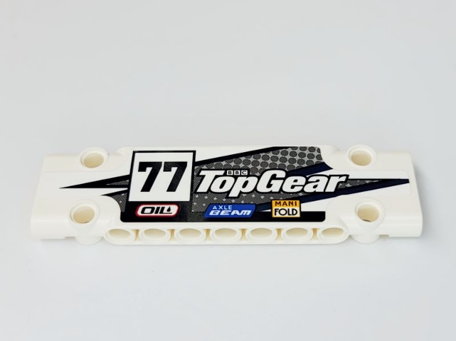 Technic, Panel Plate 3 x 11 x 1 with BBC Logo, 'Top Gear', '77', 'OIL', 'AXLE BEAM', and 'MANIFOLD' Pattern Model Left Side (Sticker) - Set 42109