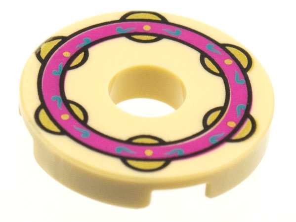 Tile, Round 2 x 2 with Hole with Magenta Ring with Dark Azure Filigree and Gold Jingles Pattern (Musical Instrument, Tambourine)