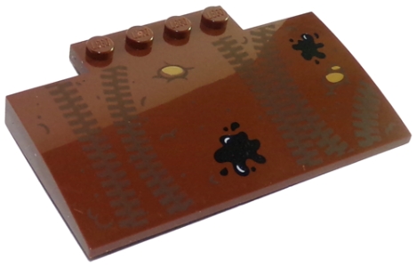 Slope, Curved 5 x 8 x 2/3 with 4 Studs with Tire Tracks and Oil Splotches Pattern