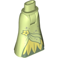 Mini Doll Hips and Skirt Full Length with Silver Sparkles, Bright Light Yellow Flower and Inset Pattern - Thick Hinge