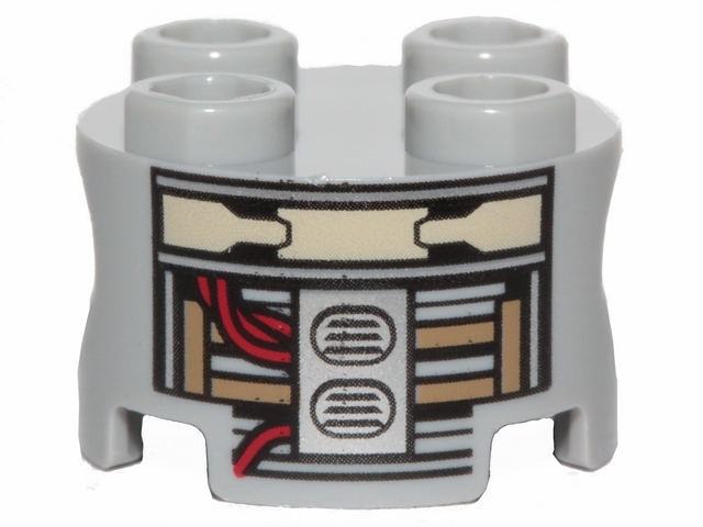 Brick, Round 2 x 2 with Pin Holes with Dark Tan, Red and Silver Robot Pattern (R1-J5)