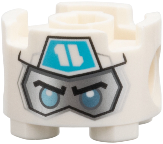 Brick, Round 2 x 2 with Pin Holes with Balaclava with Ninjago Logogram Letter Z on Medium Azure Pentagon over Silver Face with Black Eyebrows and Metallic Light Blue Eyes Pattern (Zane Head)