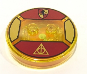 Dimensions Toy Tag 4 x 4 x 2/3 with 2 Studs and Trans-Orange Bottom with Hogwarts Gryffindor Crest and Gold Deathly Hallows Symbol on Dark Red Background Pattern (Hermione Granger)