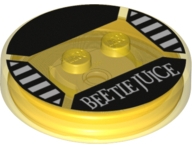 Dimensions Toy Tag 4 x 4 x 2/3 with 2 Studs and Trans-Orange Bottom with White 'BEETLEJUICE' and Stripes on Black Background Pattern (Beetlejuice)