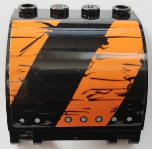 Panel 3 x 4 x 3 Curved with Double Clip Hinge with Worn Black and Orange Stripes, Silver Rivets Pattern Model Right Side (Sticker) - Set 70654