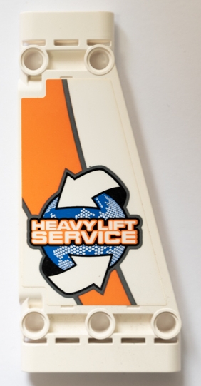 Technic, Panel Plate 5 x 11 x 1 Tapered with 'HEAVY LIFT SERVICE', White Arrows and Orange and Dark Bluish Gray Stripes Pattern Model Right Side (Sticker) - Set 42052