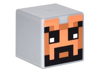 Minifigure, Head, Modified Cube with Pixelated Nougat Face, Medium Nougat Mouth, and Black Eyes, Eyebrows, and Beard Pattern (Minecraft Skin)