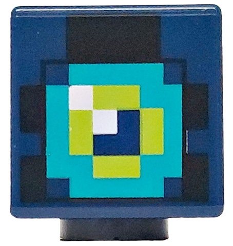 Minifigure, Head, Modified Cube with Pixelated Dark Turquoise, Lime and White Pattern (Minecraft Ender Knight / Eye of Ender)