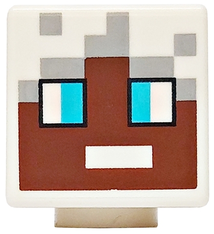 Minifigure, Head, Modified Cube with Pixelated Reddish Brown Face, Medium Azure Eyes and Light Bluish Gray Hair Pattern (Minecraft Ender Explorer)