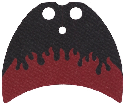 Minifigure Cape Cloth, Crescent Shaped with Flames on Black Background Pattern - Traditional Starched Fabric