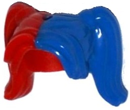 Minifigure, Hair Female Pigtails High, Long Bangs, Hole on Top with Blue Left Half Pattern