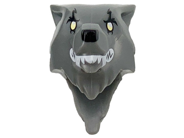 Minifigure, Head, Modified Wolf, Smooth Hair and Brow with Black Nose and Eyebrows, White Teeth and Fangs, Bright Light Yellow Eyes Pattern
