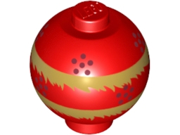 Brick, Round 2 x 2 Sphere with Stud / Robot Body with Dragon Dance Pearl, Gold Fringe and Dark Red Dots Pattern