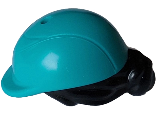 Mini Doll, Hair Combo, Hair with Hat, Bun and Side Bangs, Hole on Top with Molded Dark Turquoise Horse Riding Helmet Pattern