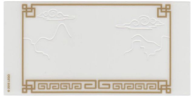 Plastic Translucent Shadow Theater Screen with Mountain and Cloud Cutouts and Gold Geometric Frame Pattern