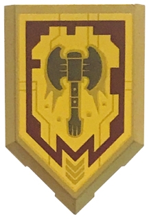 Tile, Modified 2 x 3 Pentagonal with Nexo Power Shield Pattern - Merlok Power Axe
