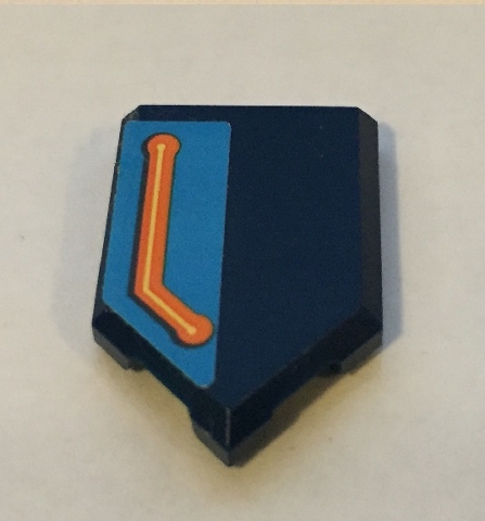Tile, Modified 2 x 3 Pentagonal with Orange and Yellow Line on Dark Azure Background Pattern Model Right Side (Sticker) - Set 72004