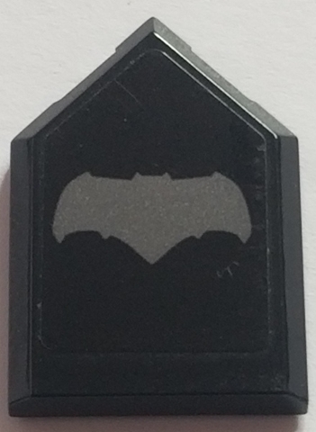Tile, Modified 2 x 3 Pentagonal with Flat Silver Bat on Black Background Pattern (Sticker) - Set 76045