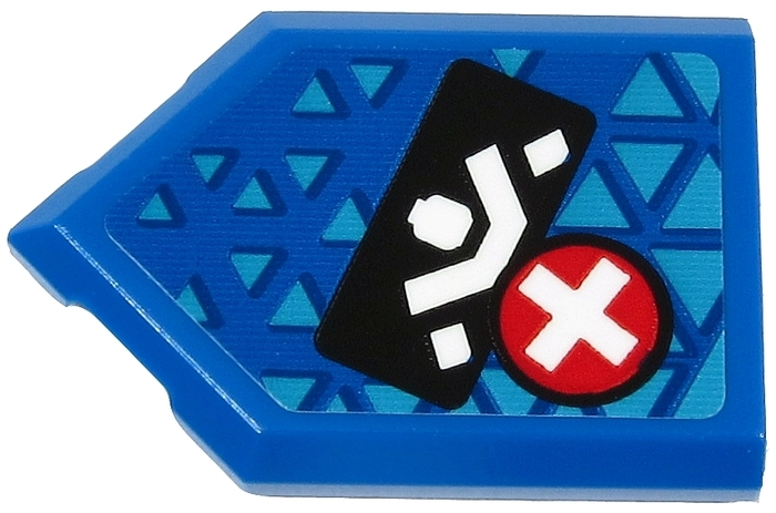 Tile, Modified 2 x 3 Pentagonal with White Ninja Silhouette on Black Rectangle and White Plus Sign on Red Circle Pattern (Sticker) - Set 71711