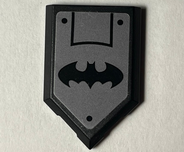 Tile, Modified 2 x 3 Pentagonal with Black Batman Logo and Rivets on Dark Bluish Gray Background Pattern (Sticker) - Set 76117