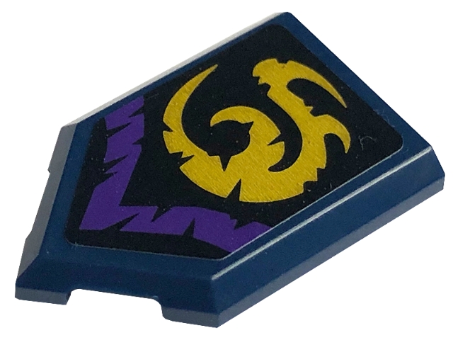 Tile, Modified 2 x 3 Pentagonal with Gold and Dark Purple Curly Symbols on Black Background Pattern (Sticker) - Set 71771