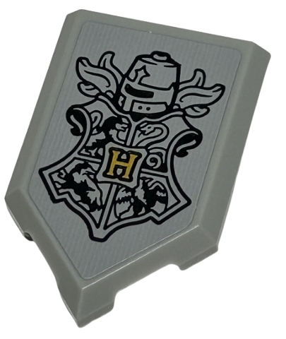 Tile, Modified 2 x 3 Pentagonal with Gold Capital Letter H, Black Hogwarts Crest, Helmet and Plume Feathers Pattern (Sticker) - Set 76413