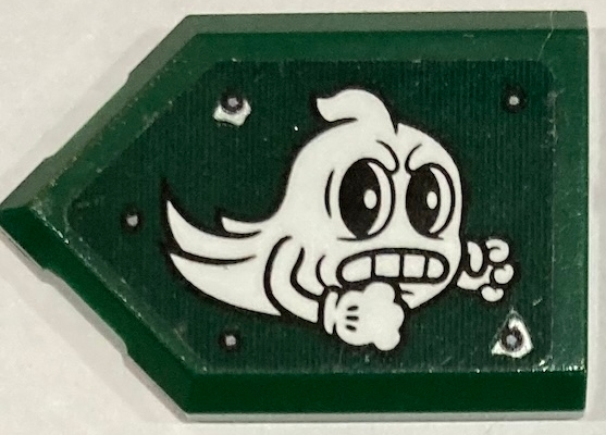 Tile, Modified 2 x 3 Pentagonal with Angry White Ghost and Rivets Pattern Model Right Side (Sticker) - Set 70434