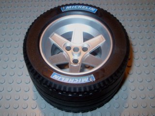 Wheel 62mm D. x 46mm Technic Racing Large, with Black Tire Technic Racing Large with 'MICHELIN' White Pattern (22969 / 32296pb02)