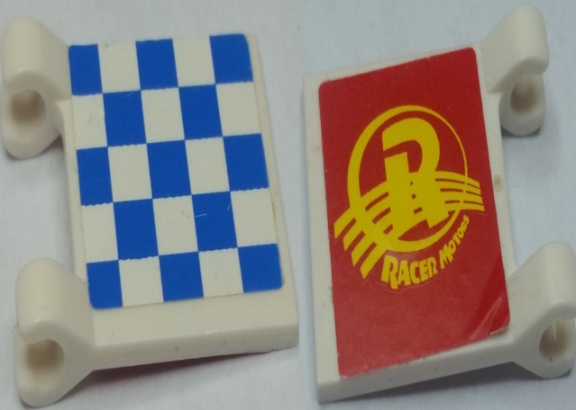 Flag 2 x 2 Square with Checkered Blue Pattern and Yellow 'RACER MOTORS' on Red Background Pattern (Stickers) - Set 8161