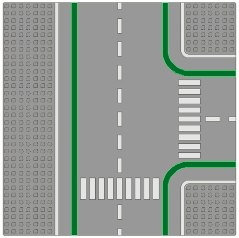 Baseplate, Road 32 x 32 7-Stud T Intersection with Crosswalks Pattern