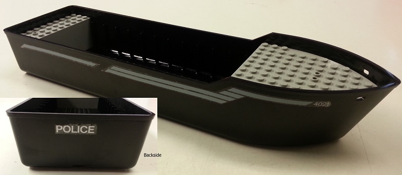 Boat, Hull Unitary 38 x 10 x 5 2/3 Floating with Raised Light Gray Decks with Stripes and '4021' on Sides and White 'POLICE' on Back Pattern (Stickers) - Set 4021