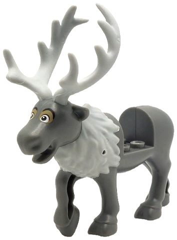 Reindeer, Frozen with Molded Light Bluish Gray Flexible Rubber Antlers, Tail and Fur Around Neck and Printed White and Dark Tan Eyes with Black Round Eyebrows, Upper Eyelids Pattern (Sven)