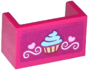 Panel 1 x 2 x 1 with Rounded Corners and 2 Sides with Cupcake, Hearts and Swirls Pattern (Sticker) - Set 41119