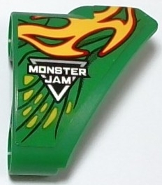 Technic, Panel Curved # 10 3 x 3 Tapered Right with Red and Yellow Flames, Lime and Dark Green Scales and Skin and Silver 'MONSTER JAM' Pattern (Sticker) - Set 42149