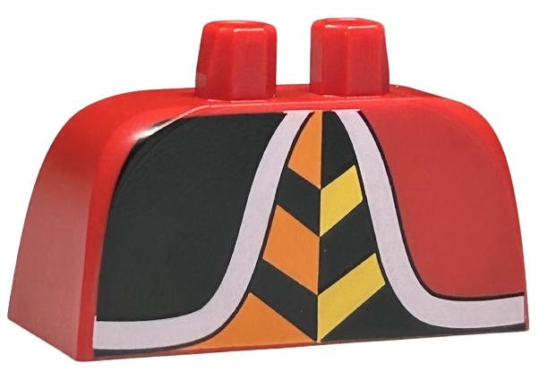 Lower Body, Skirt Wide with Side Hoops (Panniers) with Orange, Yellow and Black Stripes and White Dress Trim Pattern