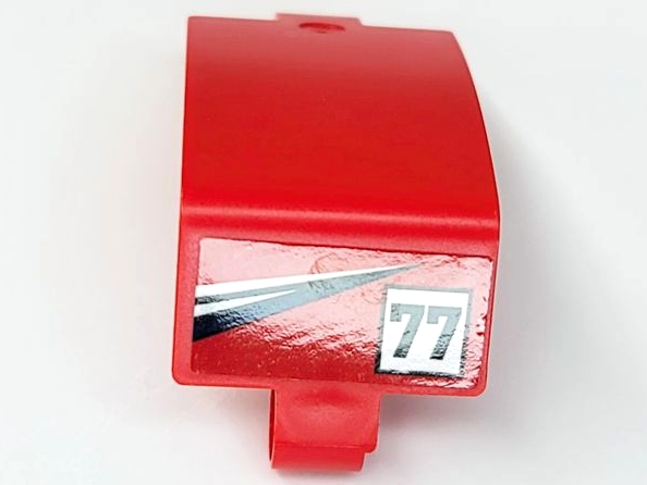 Technic, Panel Curved 3 x 5 x 3 with Black '77' on White Square, Black and White Triangular Stripes Pattern (Sticker) - Set 42109