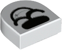 Tile, Round 1 x 1 Half Circle Extended with Black Nose and Open Mouth Smile with Silver Sparkle Pattern