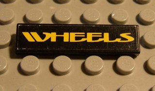 Tile 1 x 4 with Yellow 'WHEELS' on Black Background Pattern (Sticker) - Set 8440