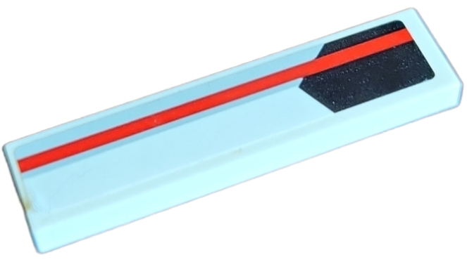 Tile 1 x 4 with Red and Light Bluish Gray Stripe over Black Pentagon Pattern Model Left Side (Sticker) - Set 75872