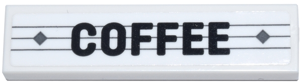 Tile 1 x 4 with Black 'COFFEE' over 3 Dark Bluish Gray Lines and 2 Diamonds Pattern (Sticker) - Set 910011