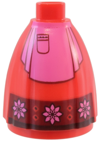 Mini Doll Skirt Long Full with Dark Red Hem with Flowers and Dark Pink Apron with Pocket Pattern