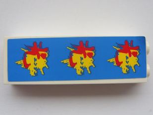 Brick 1 x 2 x 5 with 3 Red Asian Characters on Yellow Splash and Blue Background Pattern (Sticker) - Set 8161