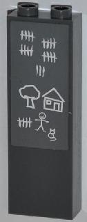 Brick 1 x 2 x 5 with Stick Figure, House, Tree and Tally Marks Pattern (Sticker) - Set 7498